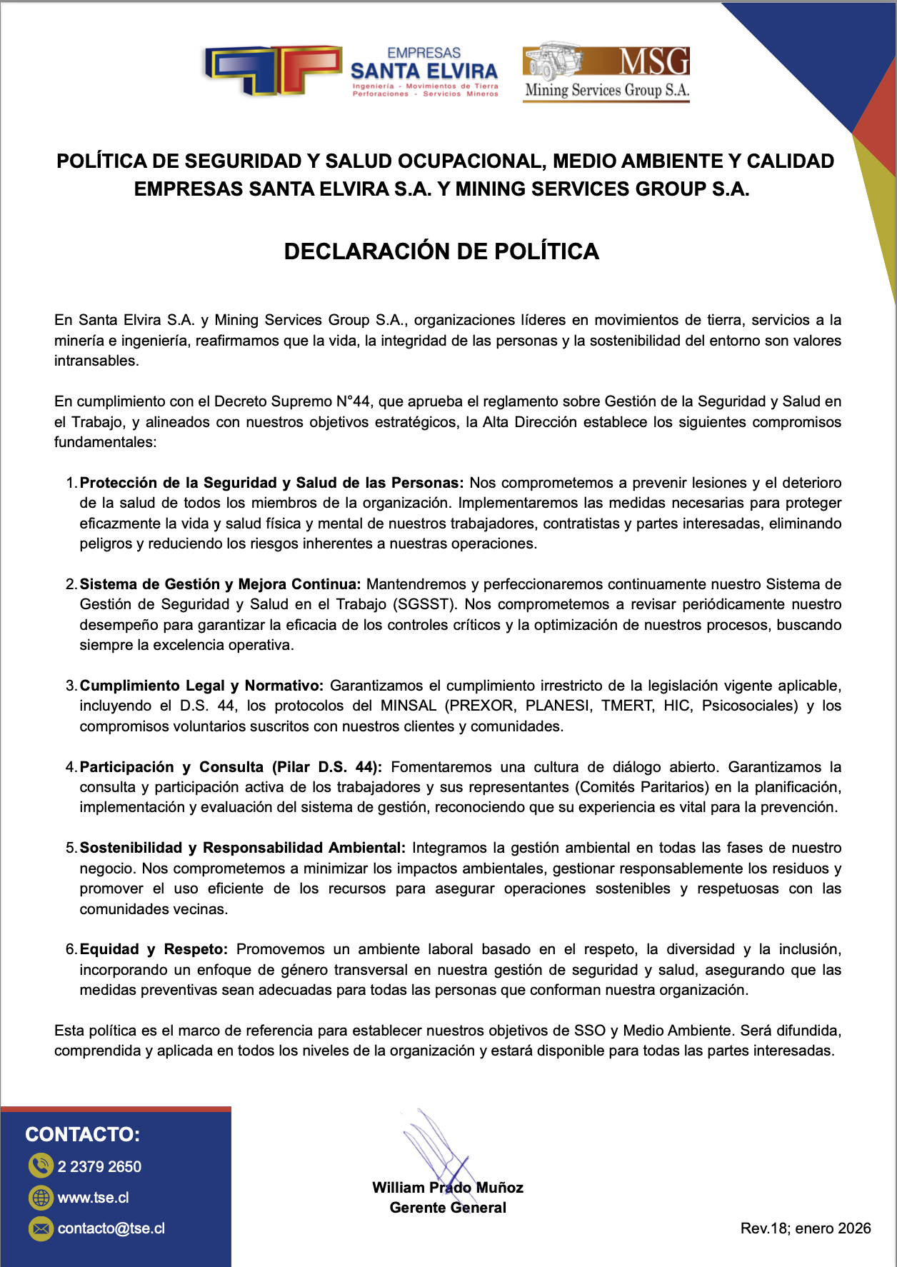 En Empresas Santa Elvira contribuimos activamente al desarrollo de la mediana y gran minería, comprometidos con impulsar operaciones eficientes, seguras y sostenibles. Desde 1969 hemos evolucionado junto a la industria, desarrollando capacidades técnicas, operativas y humanas que nos permiten responder a los desafíos de proyectos mineros de alta exigencia, aportando valor real a cada uno de nuestros clientes.